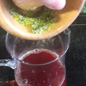 - Como ya os he comentado, las flores de hibiscus las compramos secas, así que lo primero que vamos a hacer es poner a rehidratar en un cazo 3 cucharadas de flores en litro y medio de agua durante una hora.